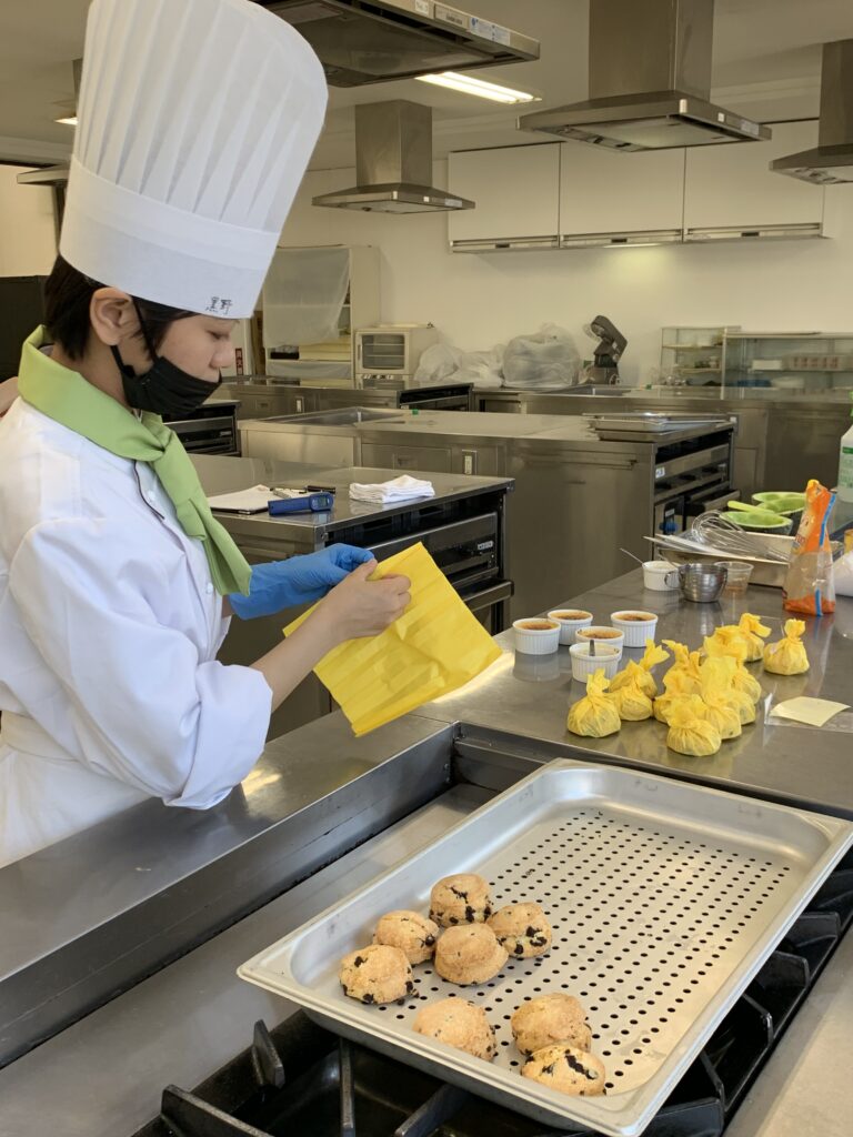 5月に続いて製菓実習の講師はホテル白菊の岩坂光代先生。