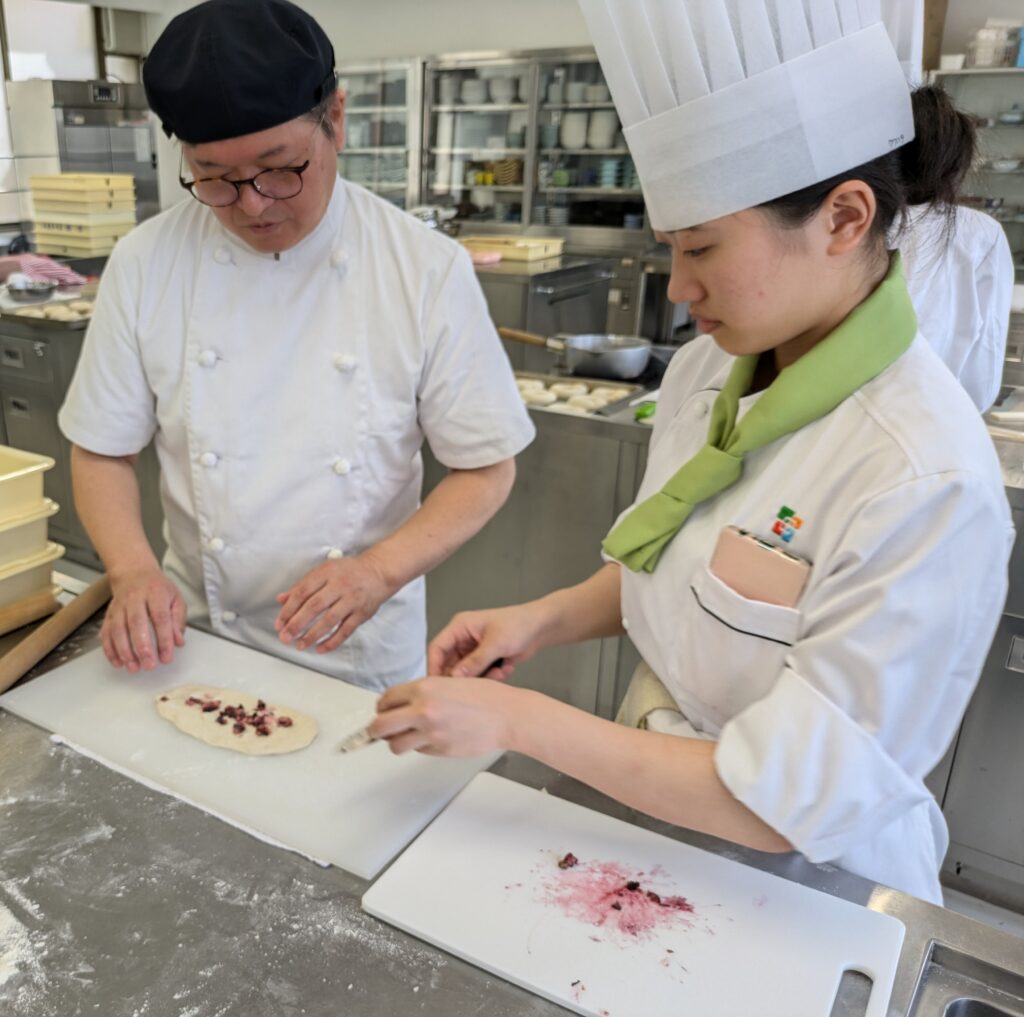 2025年8月26日 / 最終更新日時 : 2025年8月26日 admin_tkt TOPICS 製パン実習2回目はセミハード系パンを焼きました! 講師:竹田純一先生(パン工房トムソーヤ オーナー) 塩パン、エピ、ベーグルや創作パンがたくさん完成しました。 パンは発酵のための温度・湿度管理等、細やかな管理が必要です。パンが焼ける香りがたまりません。 Bluesky