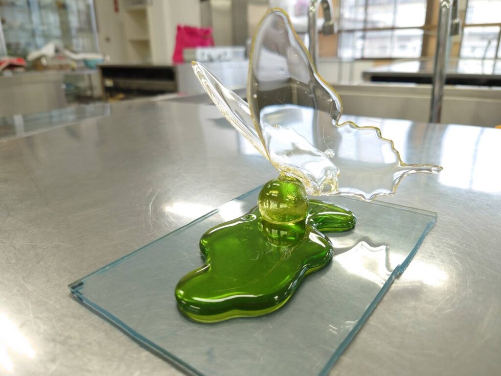 冷めてしまうと、硬くなってしまうので、熱さが残っている間に、ひっぱったり型に流したりでたくさんの部品をつくり、最後に大きな作品に組み上げます。