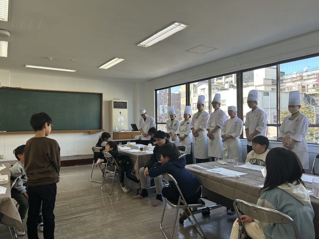 一般社団法人あすらん様の小学生40名が参加してくれました。最初は緊張気味でしたが慣れたころには質問したり、「美味しい!」と元気な声で感想を述べてくれたりしました。