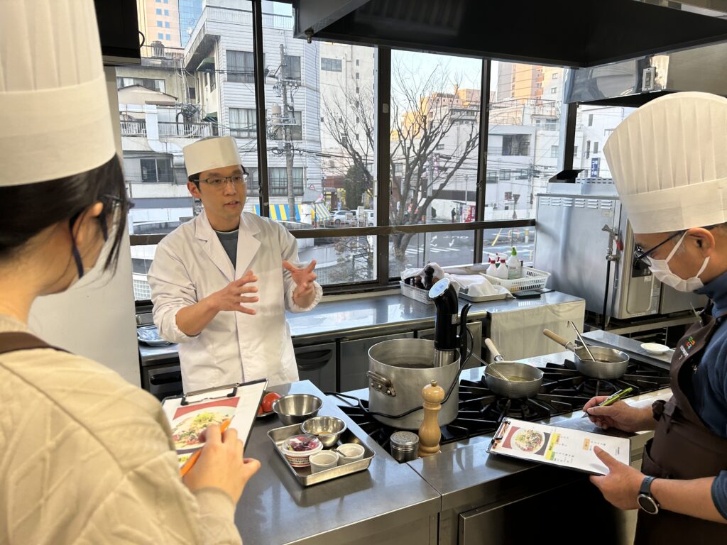 今回は低温調理器や真空包装機など特殊な機械の説明に参加者の方はメモをしたり、質問したりと積極的に参加していました。