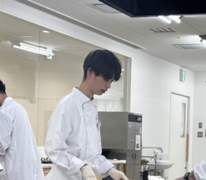 また、本校の卒業生である上野様からもホテルの業務や仕事のやりがい、きつかったことなど貴重なお話をきかせていただきました。こうやって先輩が活躍している姿や現場の声をきくことができるのは学生にとってこれから調理師として成長していく上でとても大切です。今日感じたことをこれからの学校生活、就職に繋げてくれることでしょう。